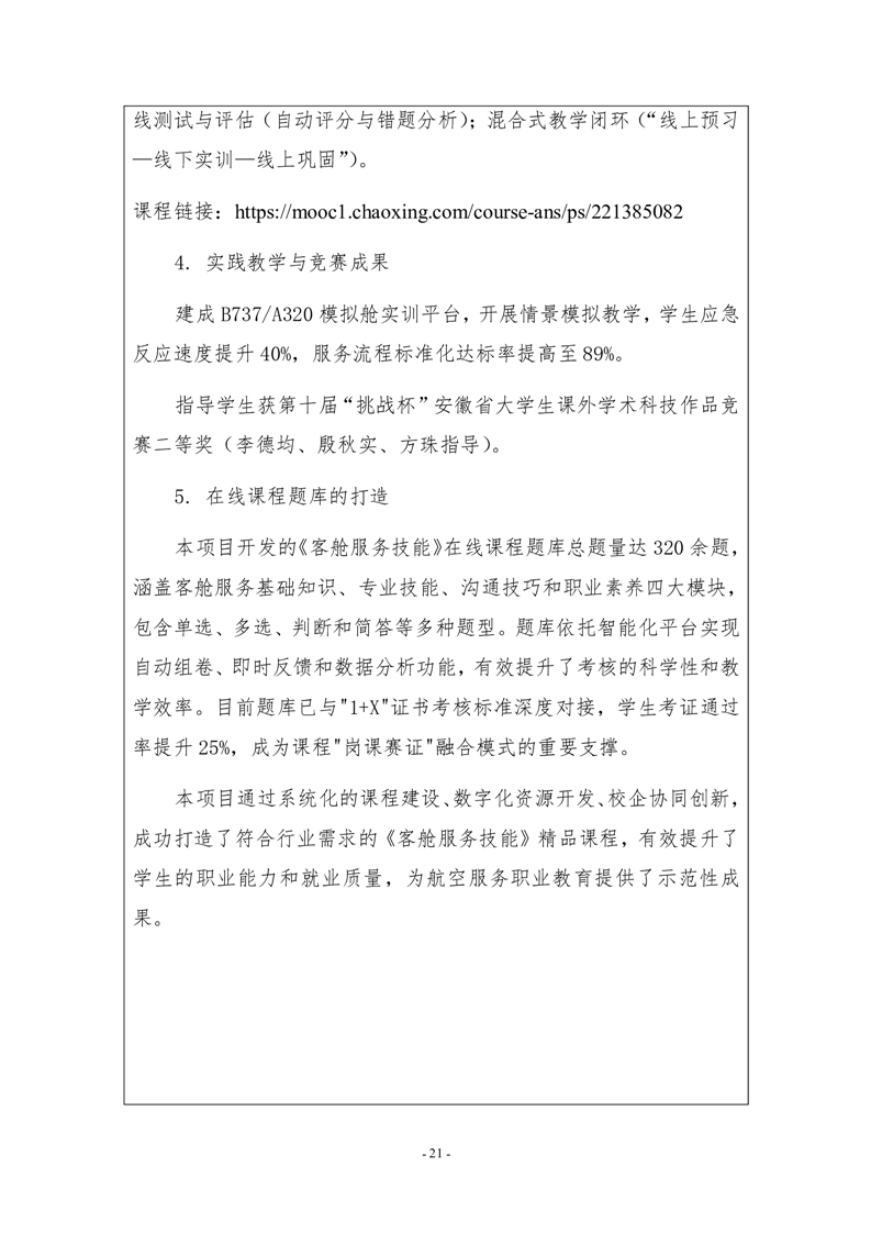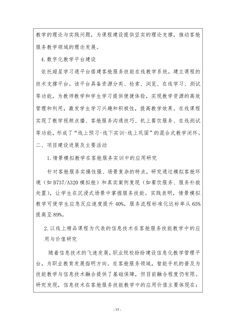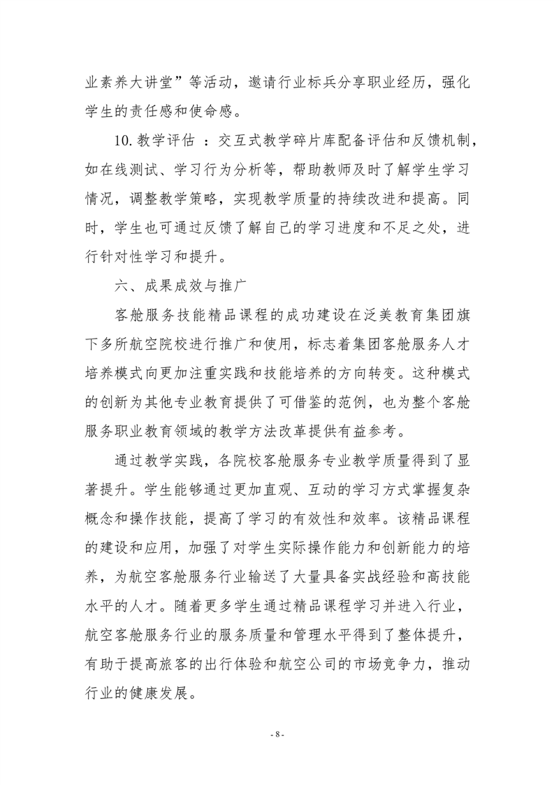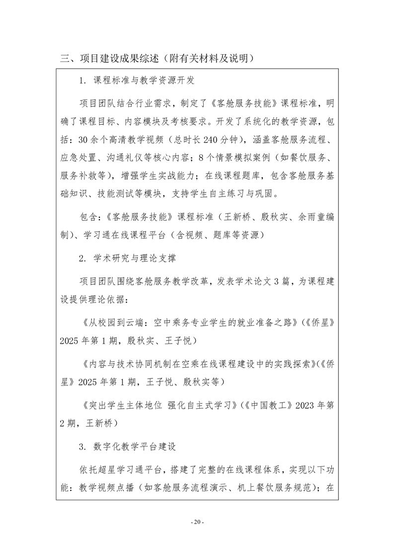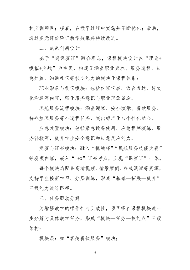 “岗课赛证”与资源双融双促,客舱服务技能优质教学资源建设与航空服务人才培养的探索与实践佐证材料
