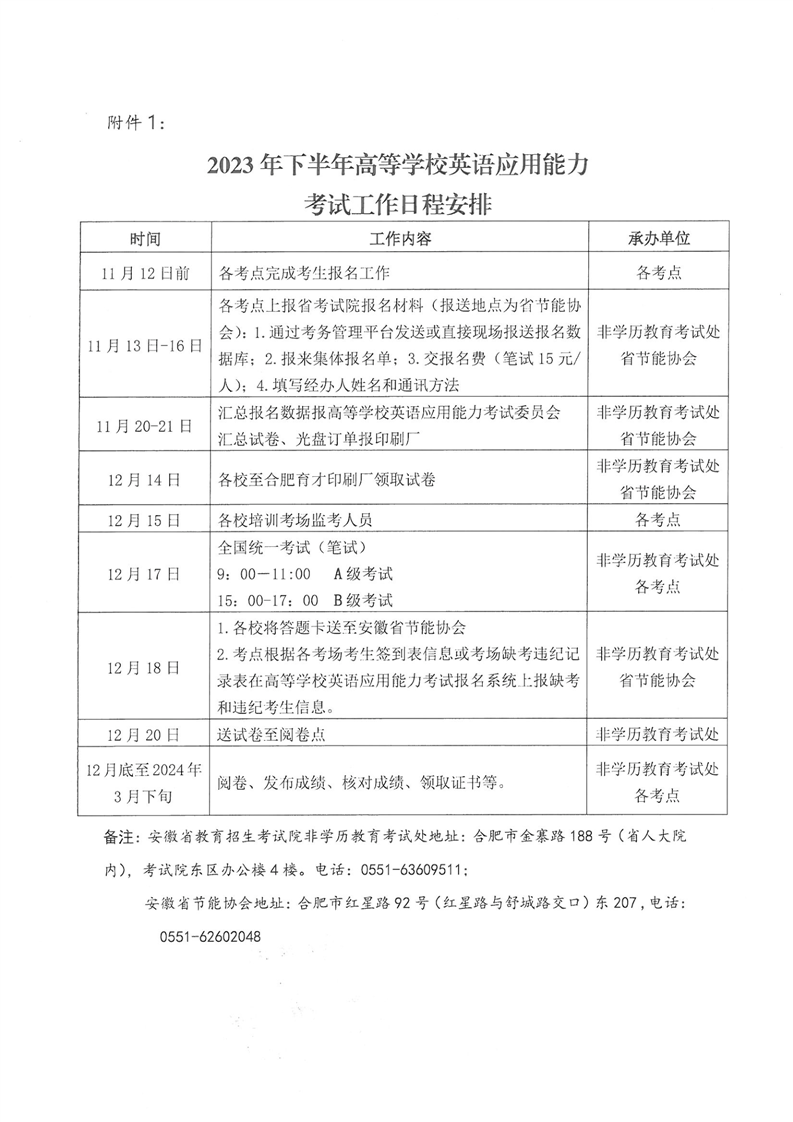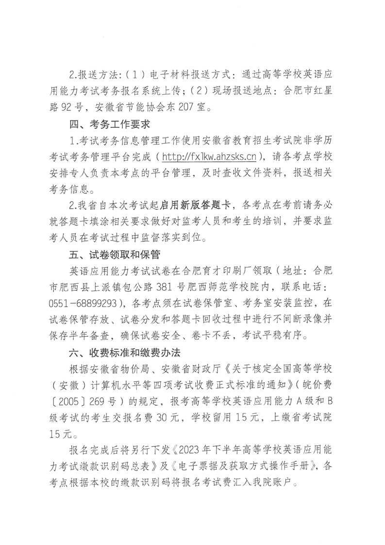 安徽省教育招生考试院关于做好2023年下半年高等学校英语应用能力考试工作的通知