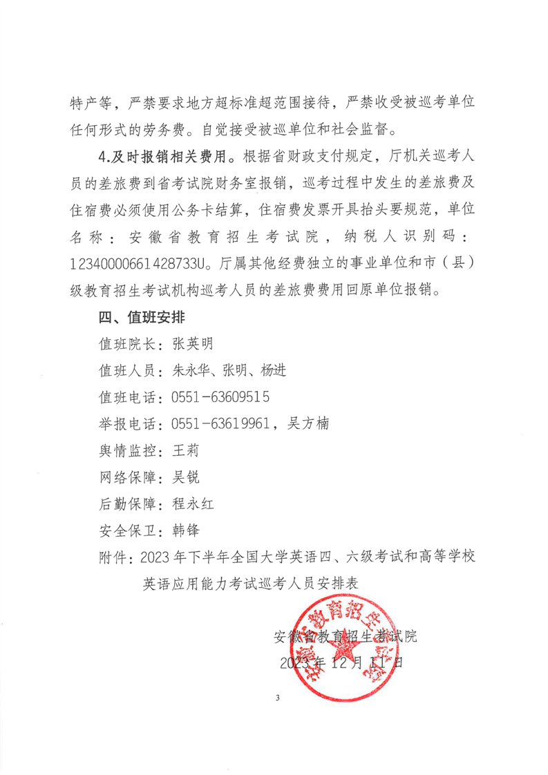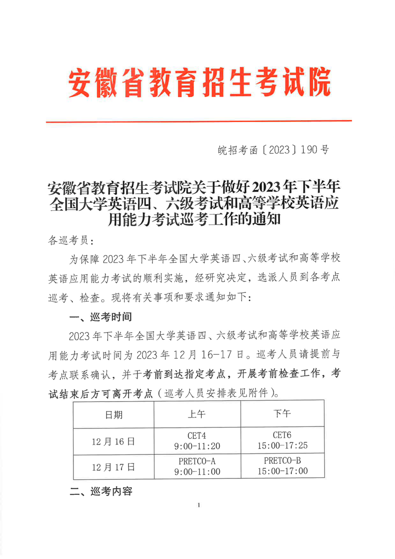 安徽省教育招生考试院关于做好2023年下半年全国大学英语四🧑🏽🦳、六级考试和高等学校英语应用能力考试巡考工作的通知