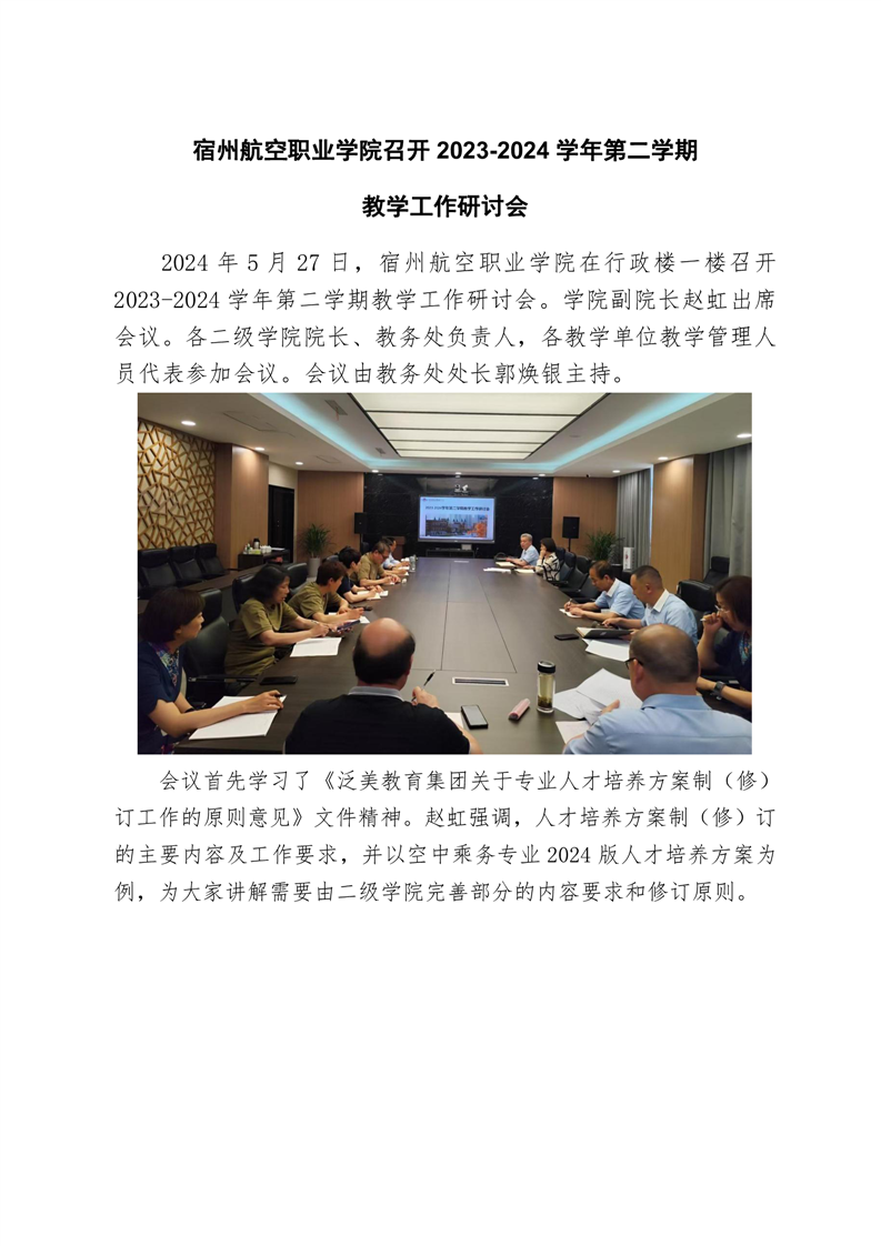 宿州航空学院召开 2023-2024 学年第二学期第六次教学工作会议