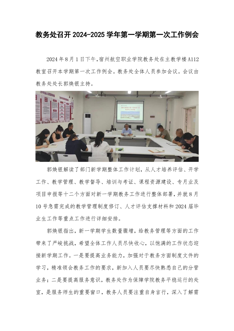 教务处召开2024-2025学年第一学期第一次工作例会