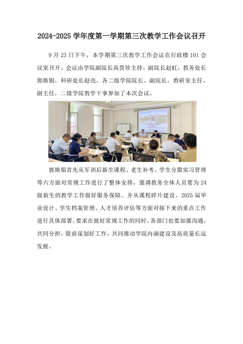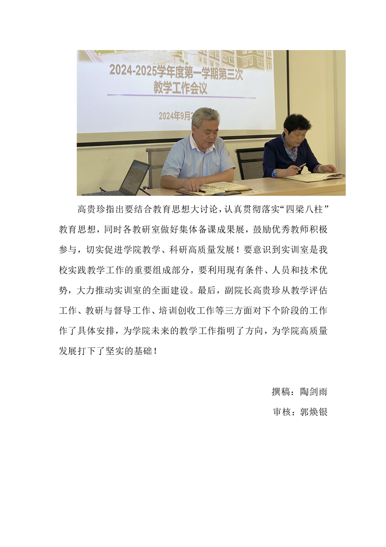 2024-2025学年度第一学期第三次教学工作会议召开