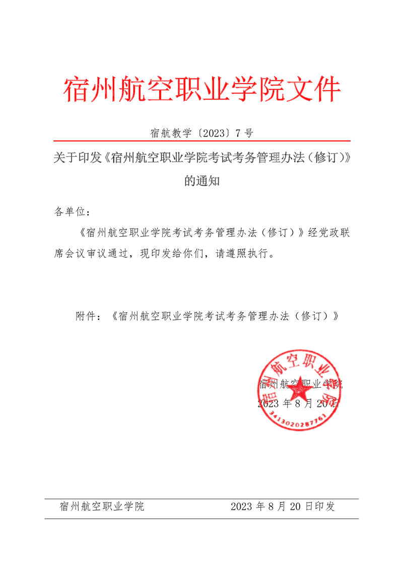 关于印发《彩神Vll学院考试考务管理办法(修订)》的通知