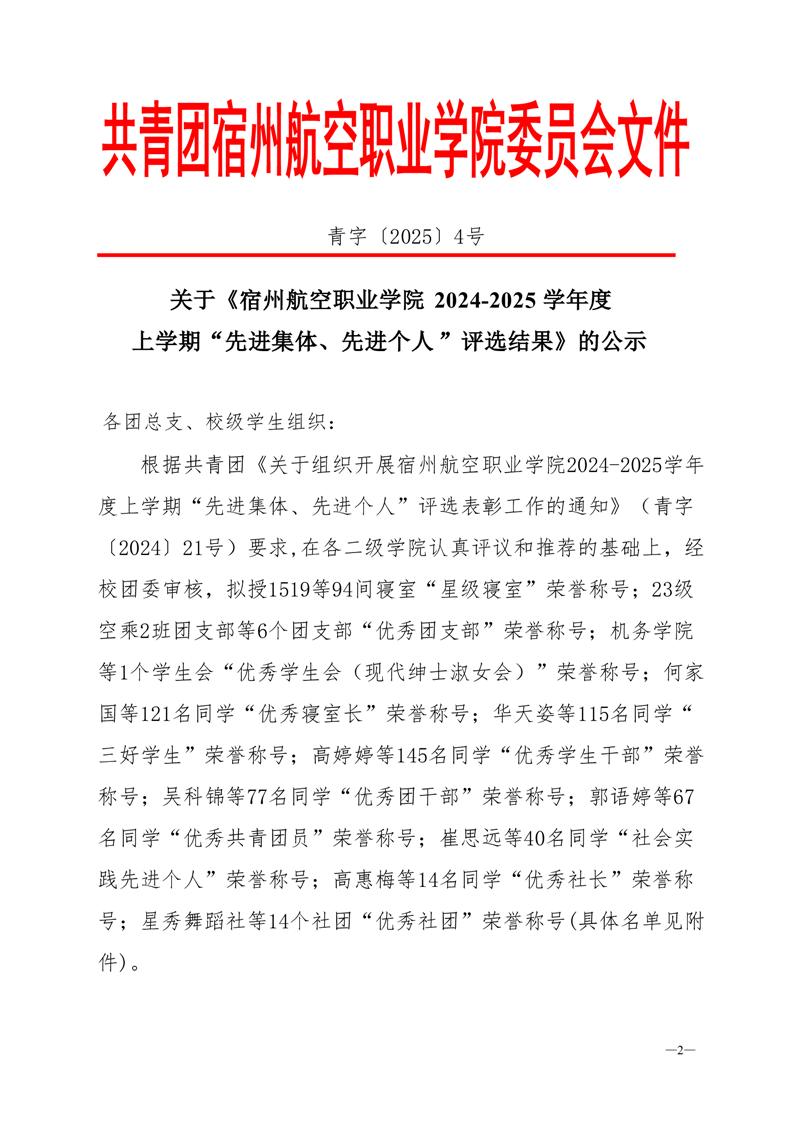 青字〔2025〕4号关于彩神Vll学院2024-2025学年度上学期先进集体先进个人评选结果的公示