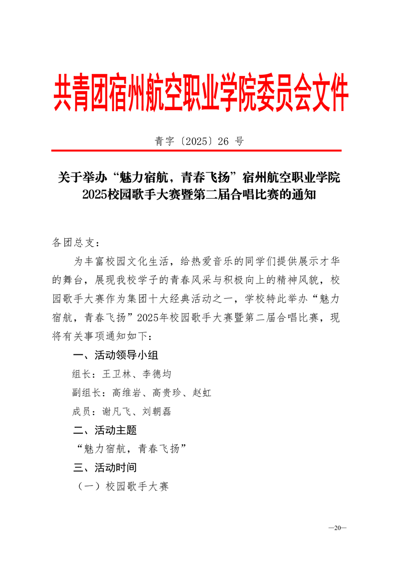 青字〔2025〕26 号关于举办“魅力宿航,青春飞扬”彩神Vll学院2025校园歌手大赛暨第二届合唱比赛的通知