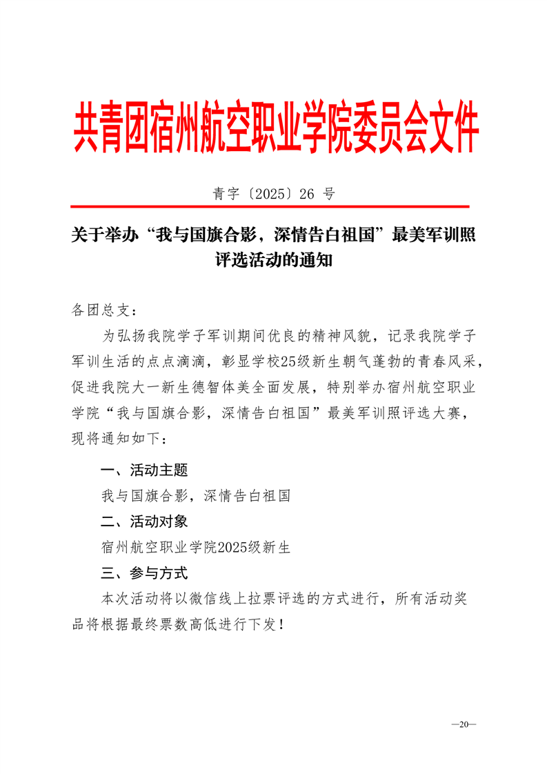 青字〔2025〕26 号关于举办“我与国旗合影🙎🏿,深情告白祖国”最美军训照评选活动的通知