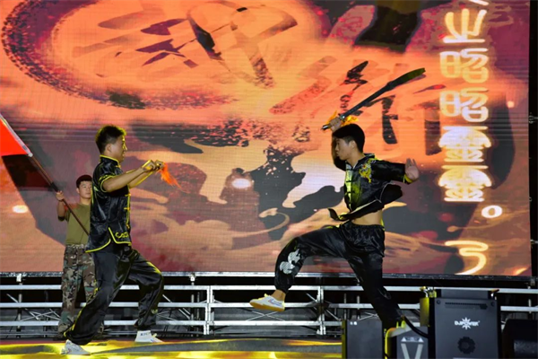 喜剧引人深思🧷,朗诵与武术表演则激发澎湃激情👩🏽‍💼。或急或缓🟫、或高或低的朗诵声,虎虎生威、刚柔并济的武术动作◼️🧑🏿‍🚒,充沛的情感溢满每一位观众的心间。