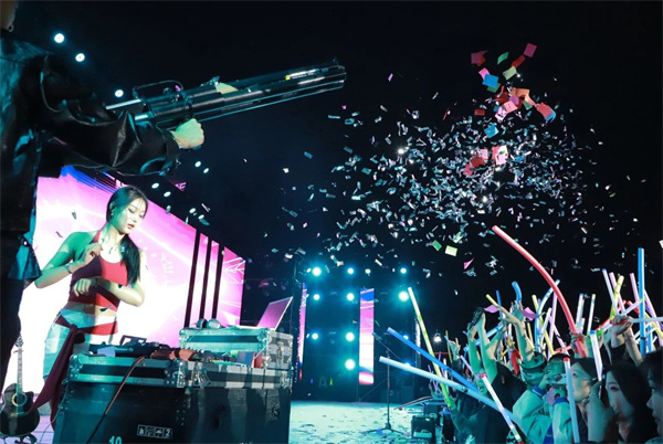 没有打碟和蹦迪的派对可称不上完美。DJ现场打碟,欢呼声此起彼伏。全场高举荧光棒,跟随节奏一起摇摆,沉浸在音乐的海洋🤵🏻♀️🤹🏼。