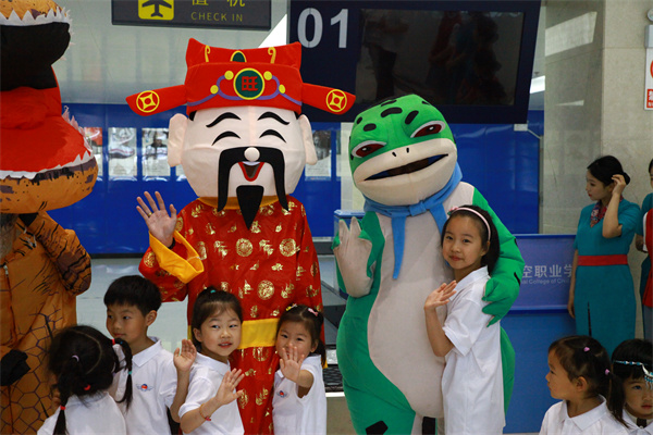 一群大型玩偶映入萌娃们的眼帘