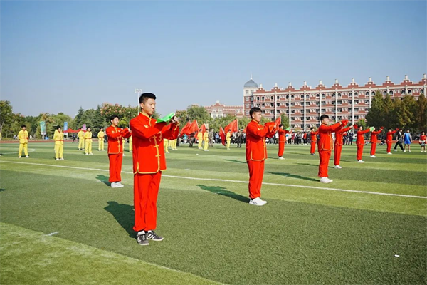 风雨操场上旌旗猎猎、战鼓声声