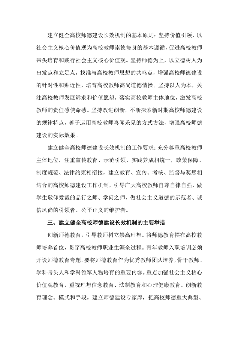 《教育部关于建立健全高校师德建设长效机制的意见》