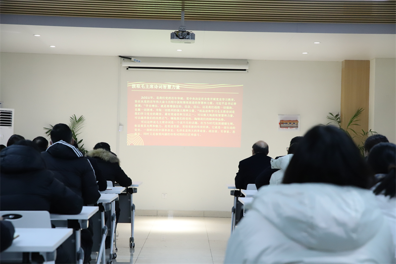 王卫林首先介绍了毛主席的生平事迹和卓越贡献,随后生动解读了毛主席的经典诗词《七律·人民解放军占领南京》,带领大家重温了那段激情燃烧的岁月,感受了革命先辈们英勇无畏的精神风貌。
