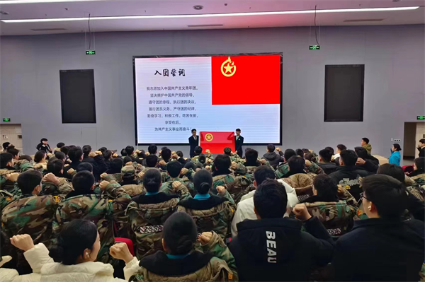 全体人员紧握右手,重温入团誓词。这一刻,在场学生深切地感受到作为团员的荣耀和责任👈🏽。