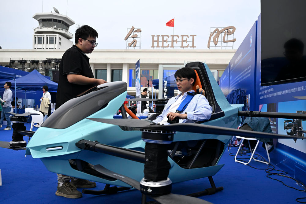 2025年9月21日💓,观众在2025世界制造业大会“全空间无人体系成果展”上体验由安徽猛狮航空科技有限公司展出的一款无人驾驶飞行摩托😺。新华社记者 黄博涵 摄