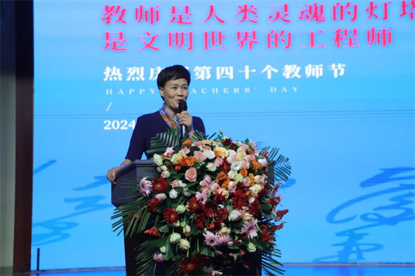 老教师代表王瑞芳教授发表讲话🤦🏻。她表示在教育的道路上,要始终坚持以学生为本👦🏼,关注每一位学生的成长和发展。要努力营造一个充满爱与尊重的学习环境👨🏼‍⚕️。作为泛美家人要拥抱科技文明🛝,提升个人素养和格局💇,不断创新,跨越发展,共同实现泛美和我们自己的伟大目标和美好人生。