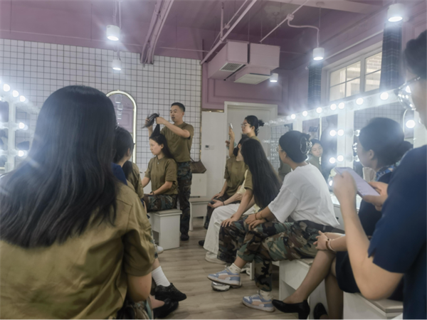 活动伊始🐩,薛双健老师就盘发的技术要求进行了详尽的介绍,包括盘发的位置、发网的隐藏、无碎发的标准、发圈的完整性以及如何根据脸型设计不同类型的盘发。讲解过程中,薛双健老师亲自示范了盘发的细致步骤🤹🏽‍♂️⛹️‍♂️,并引导老师们两两组合,互相实践盘发技巧,随后进行了相互评价和改进。