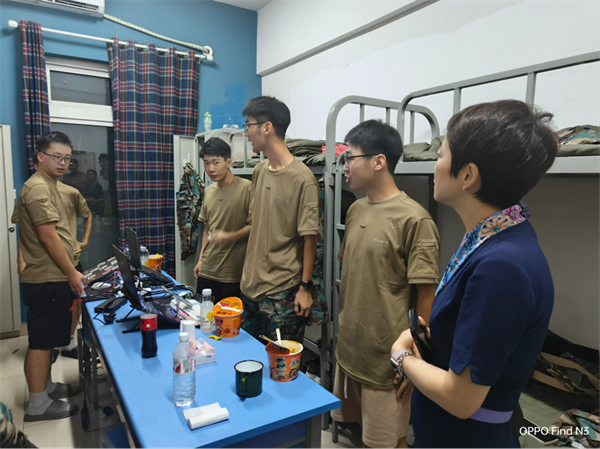 随后,丁院长深入新生寝室,以更好地了解新生的生活状况并传递学院的关怀。他亲切地询问了新生们的适应情况❤️、生活需求以及对大学生活的期望🧛🏿‍♀️,并鼓励他们尽快适应大学生活👩🏿‍💻,积极参与各类活动🔜,全面发展个人能力。同时,丁院长也提醒学生们注意个人卫生和安全,合理安排学习与休息时间🚨,并强调同学之间应互相帮助,共同营造一个和谐的宿舍文化。