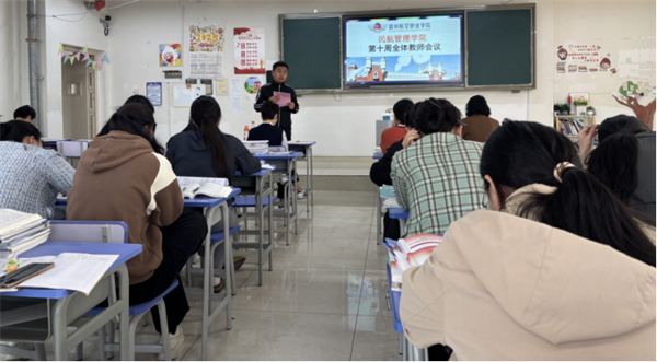2025年4月22日下午 16:20,民航管理学院在教学楼 C407 教室召开第10周全体教师会议✷。此次会议由院长丁奕华主持,民航管理学院全体教师参加。