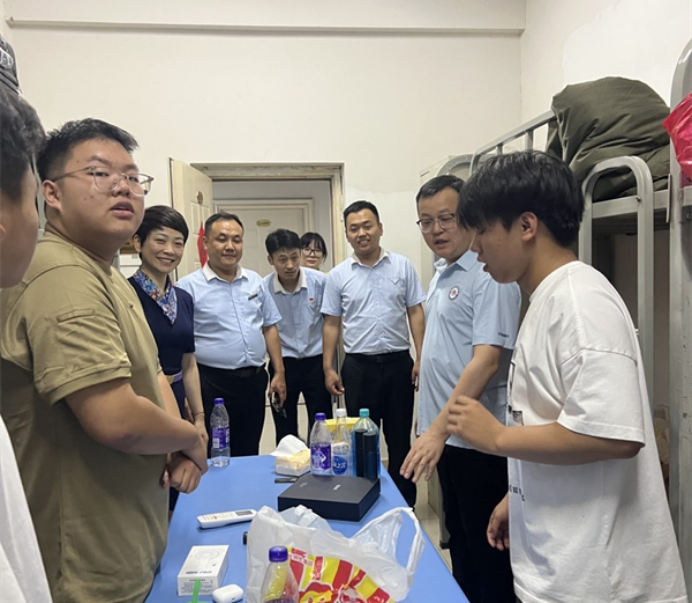 在学院女生宿舍,李德均亲切询问同学们住宿是否习惯、生活用品是否齐全⚠️。当得知部分同学对学校周边生活设施还不熟悉时,他耐心介绍周边情况😭,并鼓励大家相互帮助、尽快适应。除了关心生活情况,李德均还十分关注新生的心理适应状态,关心家乡较远的学生是否适应。在男生宿舍,李院长详细了解男生们日常是否能够吃饱,宿舍空调制冷情况是否正常,叮嘱学生食堂开放的时间节点🤶🏼,提醒学生后续军训期间一定要吃饱吃好,保持良好状态。
