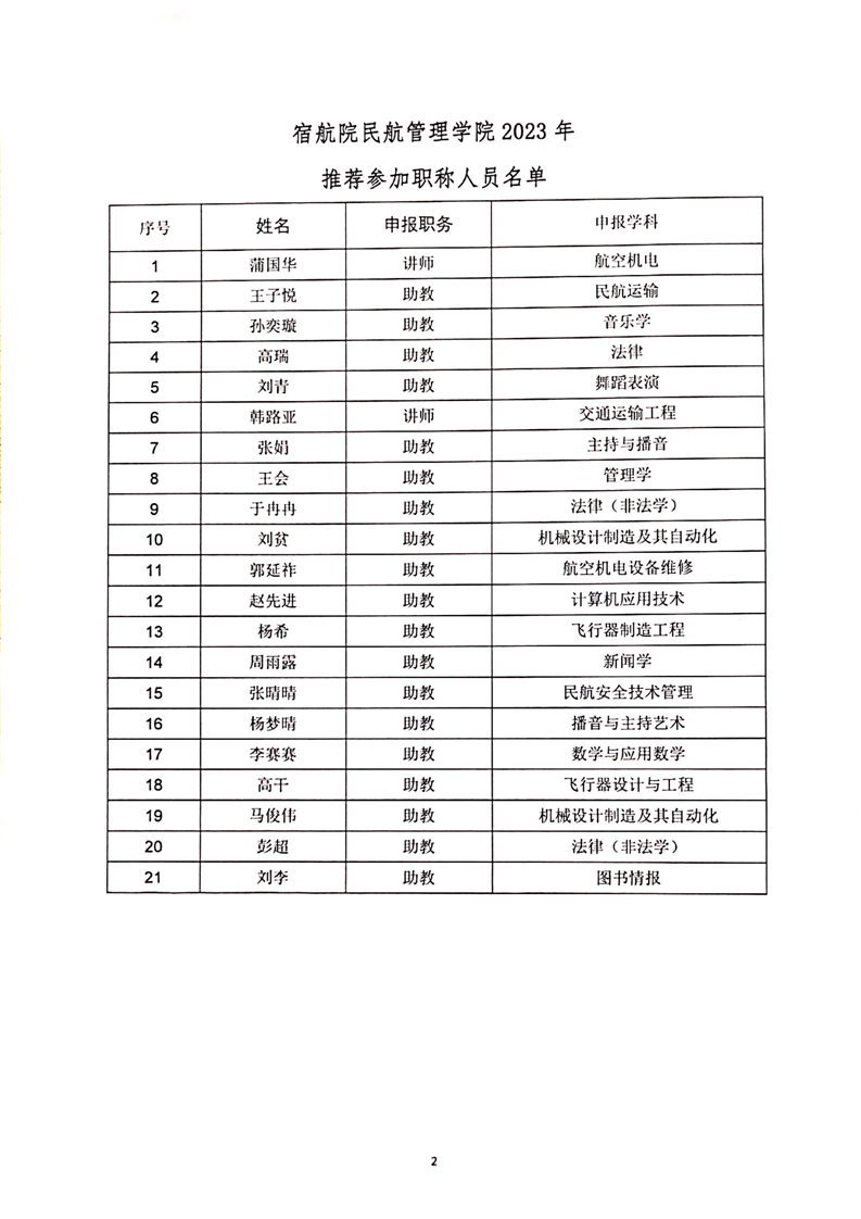 宿航院民航管理学院2023年高校教师专业技术职务评审推荐结果的公示