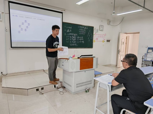 三位新教师结合学科特色与学生认知规律,精心设计教学环节🧜🏽♂️,呈现出风格鲜明的课堂:李鑫老师讲授《数据结构与算法》“最短路径”时,以“地图导航”案例导入,采用“问题驱动—原理解析—算法推导—代码实现—案例拓展”五步教学法🎍,借助动画演示算法流程🤙🏿;胡健威老师同样聚焦《数据结构与算法》🧑🏻🔬,以“树与二叉树”为主题,从树状结构实际应用切入,对比线性与树状结构差异,按“定义—性质—存储结构—遍历方法”层层讲解,现场绘图演示遍历过程🎤;房子屹老师则围绕《经济法基础》“权益保护法”,以“网购假货维权”案例引入,结合法律条款,通过“案例分析—条文解读—维权流程梳理”转化知识🈸,培养学生法律思维。