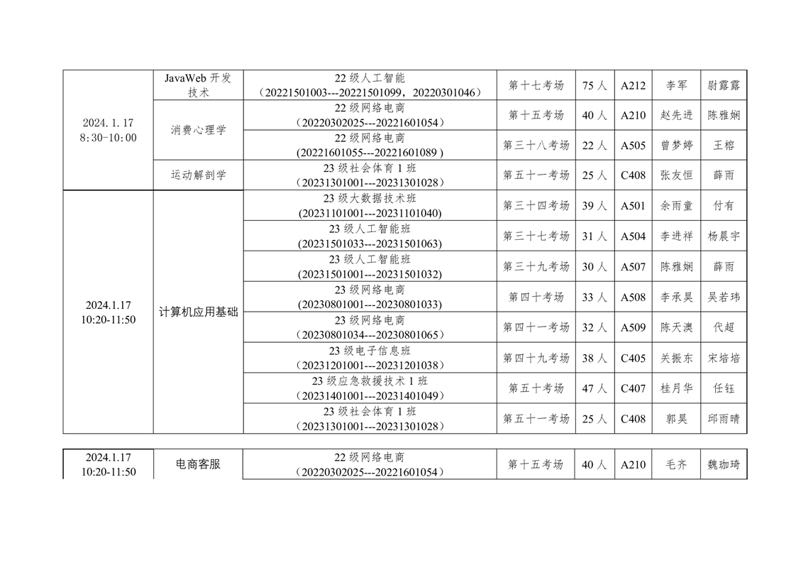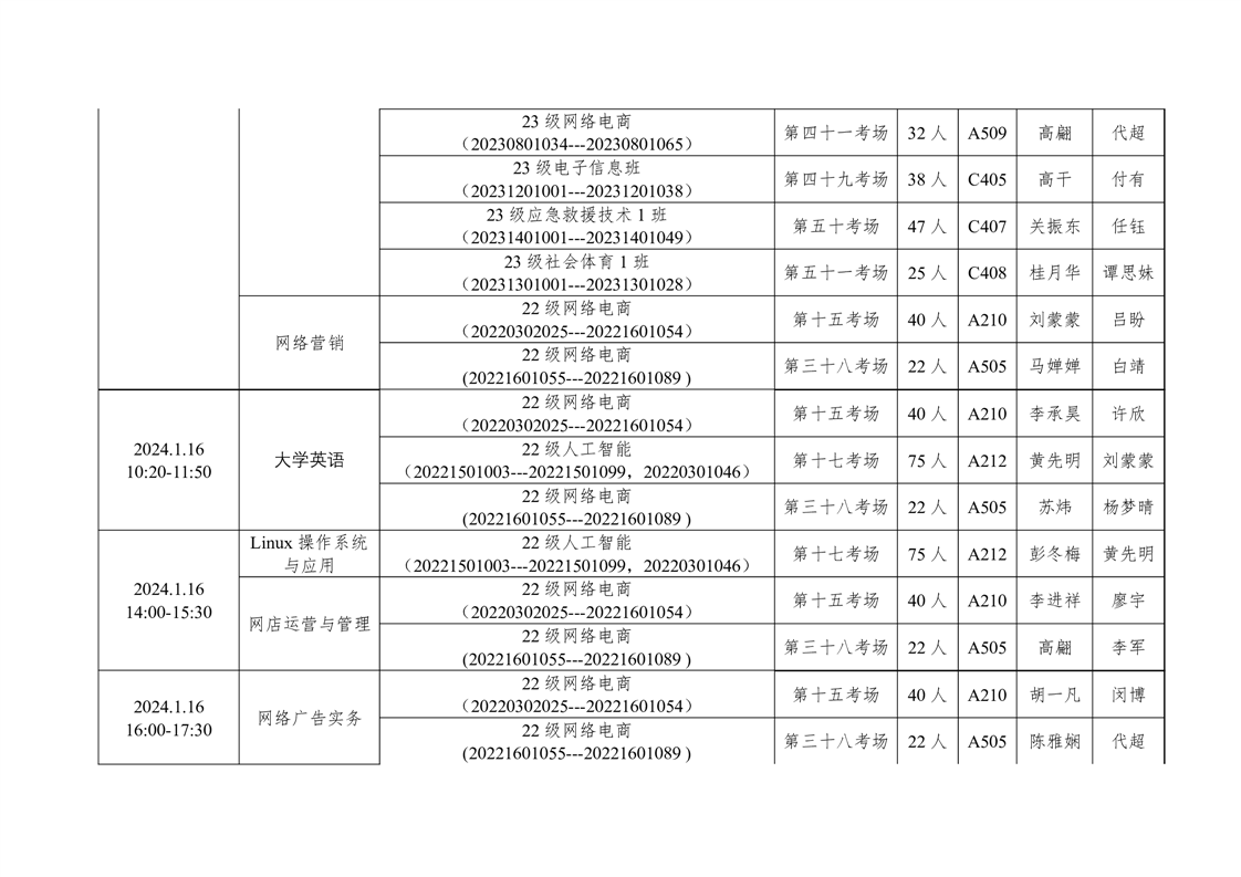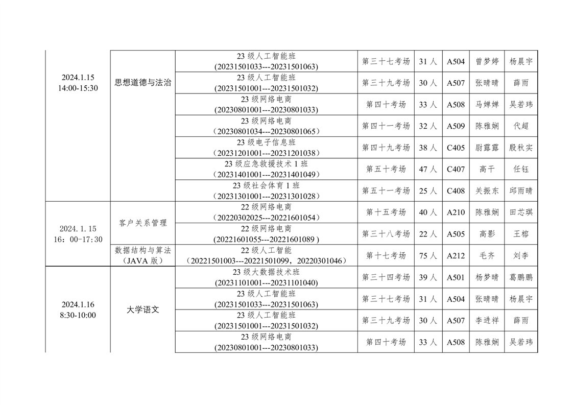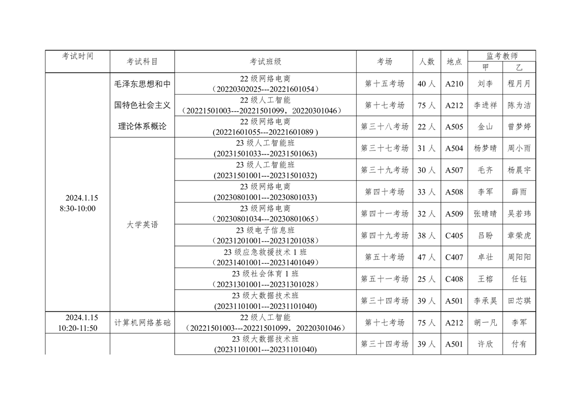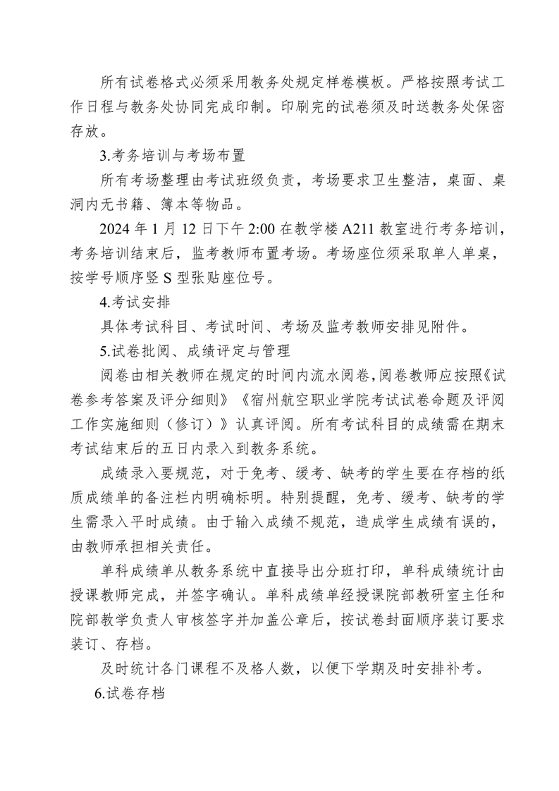 信息工程学院2023-2024学年度第一学期期末考试方案