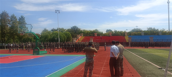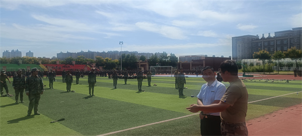 2023年9月5日👩🏼🌾,院长王新桥协校领导苏炜👒,教官闵博走进运动场,深入军训现场,关心学生军训的身体健康。学生在军训中展现了积极的态度和坚韧的意志。