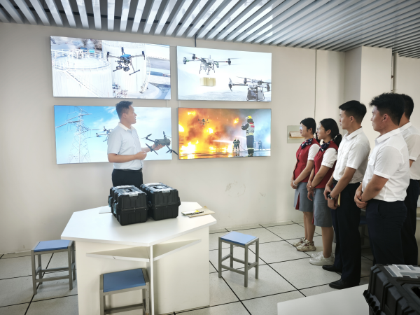随后大家一起参观了无人机实训室🤾🏼,无人机专业老师李进祥介绍了近年无人机技术快速发展的情况,剖析了无人机技术在应急救援🧗‍♂️🧏🏻‍♀️、环境监测、智慧农业等关键领域的广泛应用。参观之后,大家兴致勃勃地观摩无人机飞行表演。小小的无人机宛如空中轻灵的舞者,时而悬停空中🪿,时而贴地飞行,精彩的表演引来阵阵掌声。