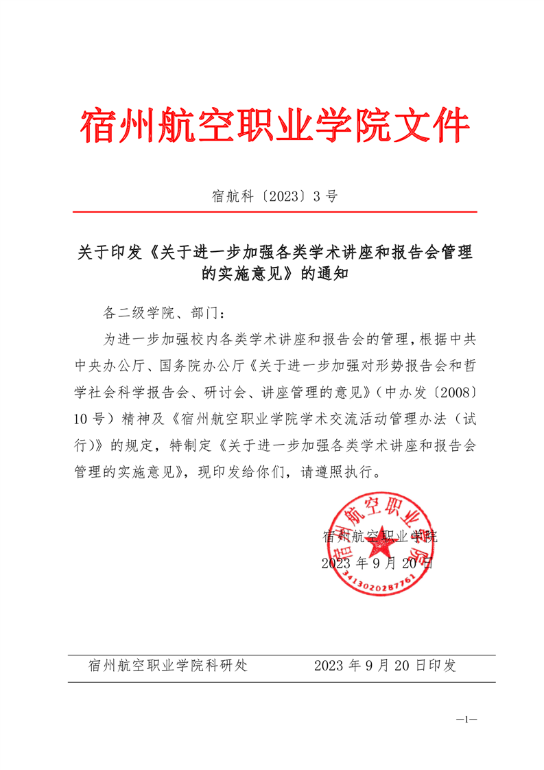 关于印发《关于进一步加强各类学术讲座和报告会管理的实施意见》的通知