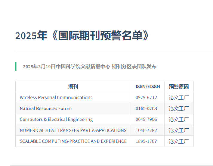 2025年《国际期刊预警名单》