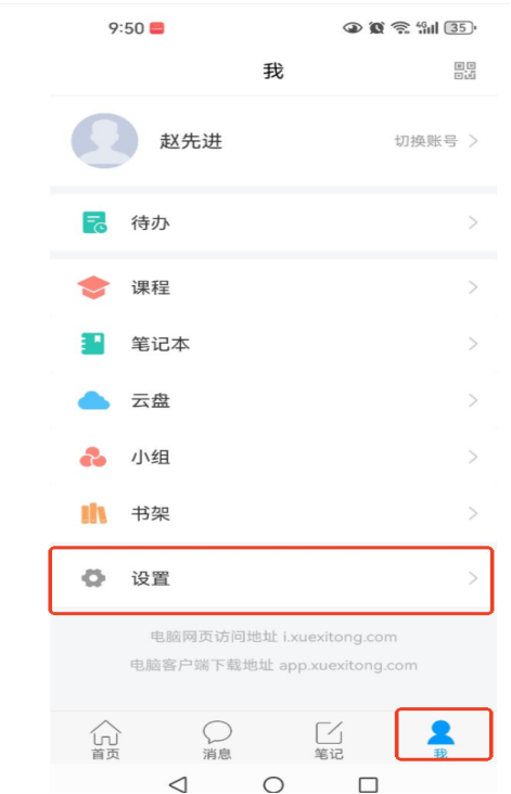 1🧎🏻、登陆学习通👩🏿🌾,选择“我”🫳🏼,点击“设置”