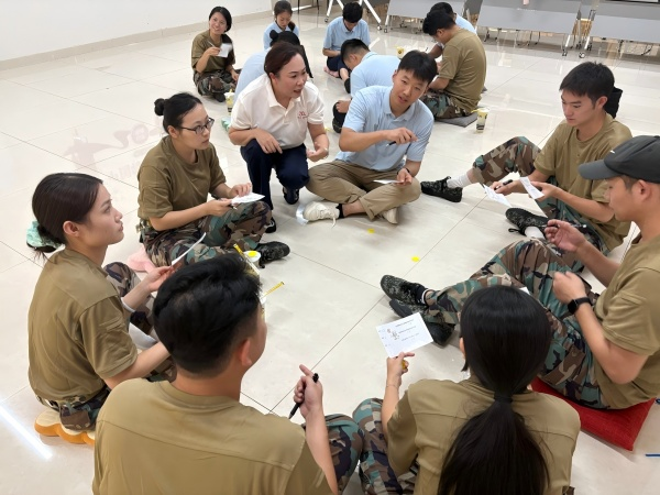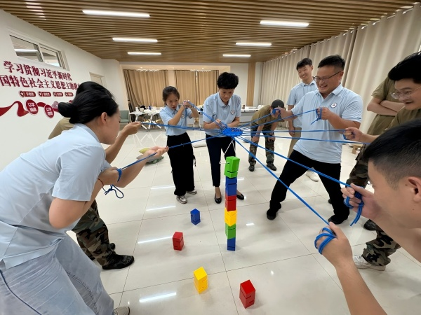 在“开户礼-情感银行启动”阶段,每位教师填写专属“情感IC卡”,从“同事身份”“教师身份”“银行密钥”三个维度完成 “人设金卡”认证,清晰梳理自身协作优势与成长需求🏄🏿♀️。核心环节“情感存取实战”中,丰富的互动挑战让教师们沉浸式体验协作与沟通的魅力😢。“信任倒-团队储备金”环节Ⓜ️,小组搭建“信用保护网”,教师们依次完成后倒并喊出协作承诺🤷🏻♀️,成功则为团队公共账户赢得红币🦹♂️,若保护网松动则需通过集体平衡训练“支付利息”,在考验信任与协作的过程中,强化了团队凝聚力❇️;“智慧塔-跨学科基建”任务里,各组教师协作吊装贴有学科标签的积木,在3分钟内争建7层以上“智慧塔”并放置“学生需求卡”,跨学科协作能力与对学生需求的关注度在实践中得到提升👱🏼;“60 秒速记密码战”中,教师们分工协作,通过思维导图、记忆口诀🚵🏻♂️、盲砖摆模型等方式高效复原知识碎片矩阵,展现出强大的团队协作与信息整合能力。