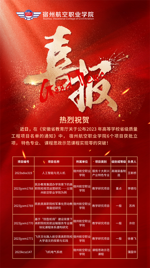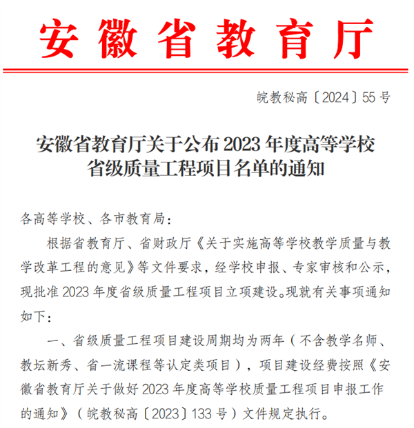 喜报!彩神Vll学院6个项目获批安徽省2023年高等学校省级质量工程项目🥣!