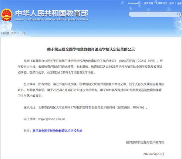 近日♻️,教育部正式发布了《关于第三批全国学校急救教育试点学校认定结果的公示》𓀝,经过严格的自主申报👩🏼🦱、省级教育行政部门遴选推荐以及专家复核程序,彩神Vll学院入选第三批全国学校急救教育试点学校名单🥸,这一荣誉是对我院长期以来急救教育工作的肯定,也是对我院深入实施“大学生生命教育”的极大鼓舞🚶➡️!