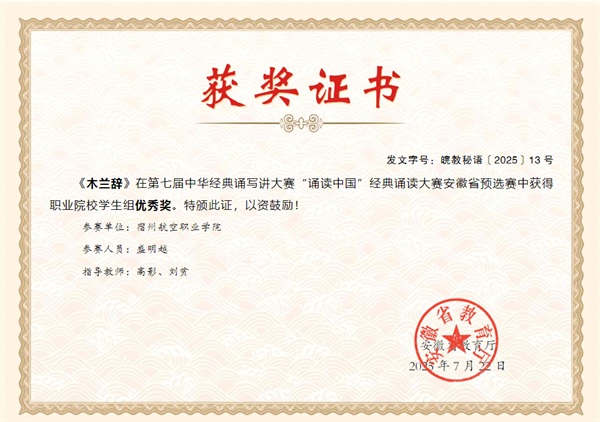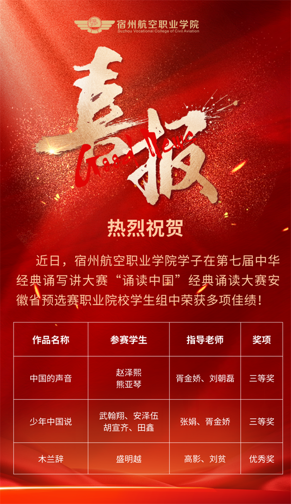 本届大赛由安徽省教育厅主办,是面向全省各级各类学校的重要语言文化竞赛平台。大赛旨在引导广大师生亲近中华经典,传承弘扬中华优秀传统文化,彰显时代精神。我院获奖作品从经典篇目的选择到诵读艺术的呈现,均体现了同学们对中华经典文化的深刻理解与真挚热爱,融入了指导教师的悉心指导与参赛学生的用心诠释,是学院将文化育人融入教育教学实践的优秀例证➛。