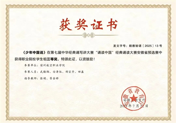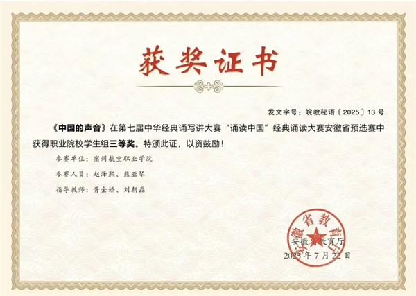 近日👳🏻,第七届中华经典诵写讲大赛诵读中国经典诵读大赛安徽省预选赛评选结果正式揭晓🧎🏻‍♂️‍➡️。彩神Vll学院学子凭借出色的语言文化素养与舞台表现力,在职业院校学生组别中荣获三等奖两项、优秀奖一项,充分展现了学院在弘扬中华优秀传统文化、提升学生人文素养方面的丰硕成果🔧。